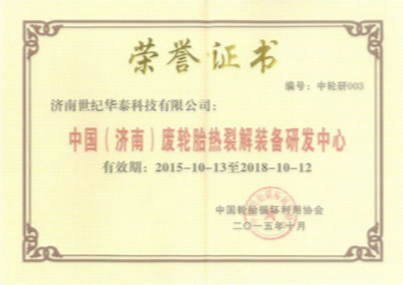 2015年10月,公司被授予“中国(山东)废轮胎热裂解装备研发中心”