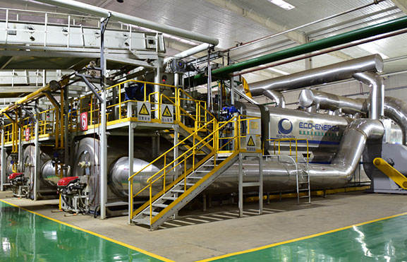 热解过程完全不结焦,独有的热分散技术保证物料受热均匀、导热效率高,可在较低的温度下完成物料气液固分离;不凝可燃气经净化后作为燃料用于供热,采用烟气余热循环技术,节能减排;物料冷却采用循环水间接冷却;工艺流程简洁;处理成本远低于国内外其他废弃物处理工艺及方式;